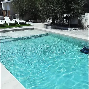 Villa Karma Berja med 2 sovrum har en parkering och en terrass med utsikt över poolen.